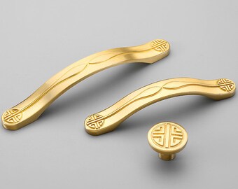 1 Pair of Handles Drawer Handles Closet Handles TV Cabinet Pulls Stylish Golden Copper Handles Modern Chinese Auspicious Patterns Double-Hole 128mm Handle